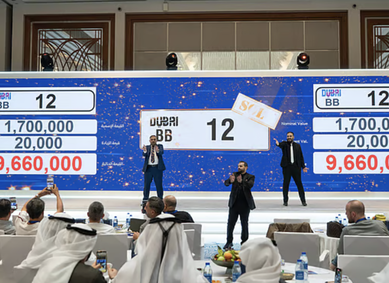 Stealing the spotlight was BB12, which sold for a jaw-dropping Dh9.66 million, making it the most expensive plate of the night. Close behind was AA25, snapped up for just over Dh8 million, while BB30 fetched Dh6.74 million and CC100 went for Dh4.21 million.